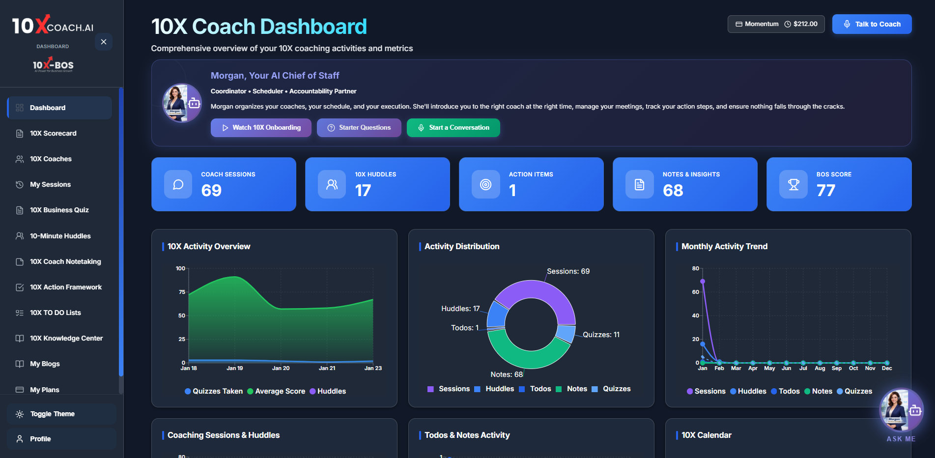 10XCoach.ai delivers elite business coaching—powered by 8 digital agents—to accelerate every part of your business, 24/7.