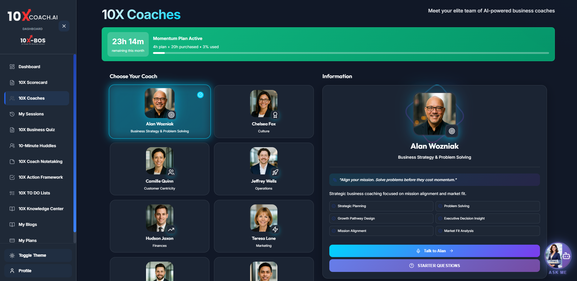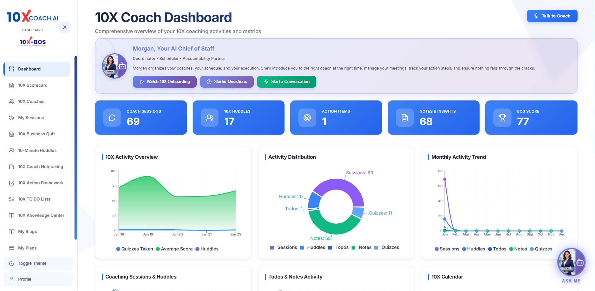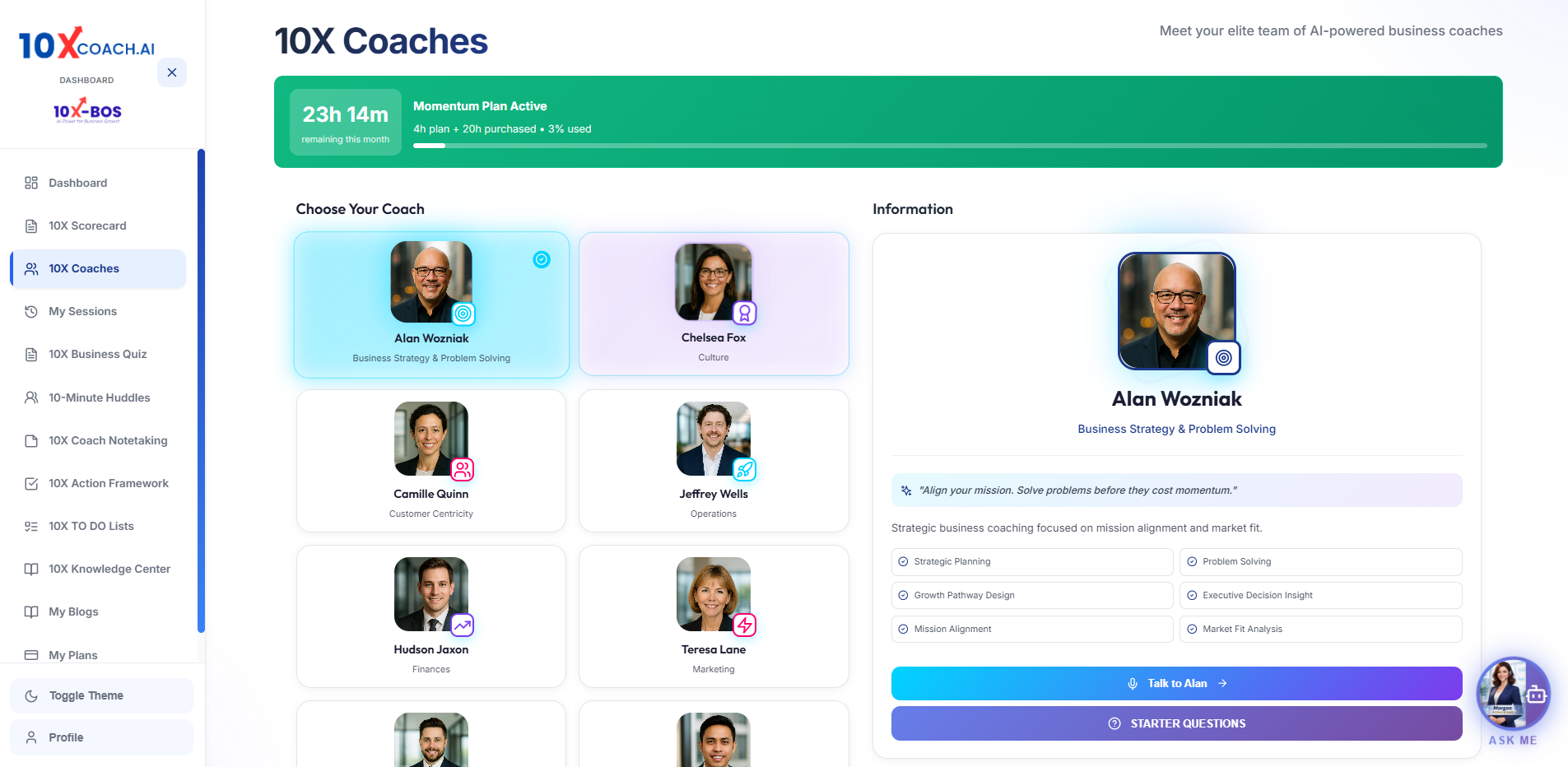 10XCoach.ai delivers elite business coaching—powered by 8 digital agents—to accelerate every part of your business, 24/7.